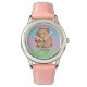 Kinderuhr aus Edelstahl mit rosa Lederarmband