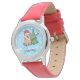 Uhr, Kinderuhr aus Edelstahl mit rosa Lederarmband