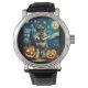 Cute Miniature Schnauzer Dog Halloween Jack O Lant Armbanduhr