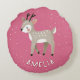 Cute Pink Reindeer Kid`s Name Christmas Rundes Kissen