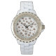 Eine wunderbare Damenuhr mit weißem Armband und grün-weiß-kariertem Ziffernblatt. Trägt sich ganz fabelhaft. Exzellenter Druck, sehr klare Farben. Schönes Design.
