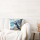 A puffin themed throw pillow. A beautiful vibrant colorful ai illustration of a puffin watching the ocean waves by the sea shore surrounded by rocks, dunes and flowers.