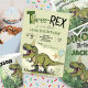 This cute T-Rex dinosaur cartoon themed 3rd birthday party thank you card with funny "Three-Rex" and "Thank You for stomping by" sayings is the perfect way to thank your guests for coming to your little Dino lover's third birthday! Easily personalize the name on the back side cake with 3 candles. Birthday ages 1-6 are available in the collection. Find the matching "Three-Rex" dino birthday invitation, 3-Rex custom name t-shirt + matching family tees, return addressed envelope, full stationery and party decor collection above! Custom design requests and template questions are always welcome - click the "message" button here, or email: contact@figandlilyco.com. Sending blessings and thanks from Fig & Lily Co. ♥