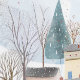 Cute Winter Pine Trees Homes Snow Nursery Room Tapete