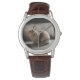 Uhr, Vintage Männeruhr mit schwarzem Lederarmband