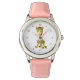 Kinderuhr aus Edelstahl mit rosa Lederarmband