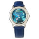 Kinderuhr aus Edelstahl mit blauem Lederarmband