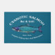 Ein blauer Sockeye Lachs mit Text, der "Cyanotic Lachs Bar & Grill Kenai, Alaska" und "Bekämpfen Sie die Erholung und Entspannung der Fischerei. Die Lachsfischerei ist sehr beliebt und in Alaska zu beliebt. Stellen Sie sich hundert Angler vor, ungefähr Schulter zu Schulter, die beide Ufer eines Baches belästigen und versuchen, in der Hoffnung, einen großen Lachs zu landen, die Überquerung von Linien mit allen anderen zu vermeiden. Das ist der Kampf gegen das Angeln. Nach einem Tag davon nehmen Sie etwas R&R am mythischen Cyanotischen Lachs in Kenai. Die Angelgeschichten haben dort erzählt...ein bisschen wahr.