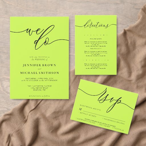 Cyber Lime Jet Black Simple Script Wedding Dinner