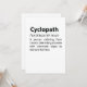Genießen Sie diesen lustigen Cyclopath Funny Dictionary Definition Design oder geben Sie ihn als perfektes Geschenk für Ihre Radfahrer Freunde und Familie. Passen Sie sich mit Ihrem eigenen Text oder einer einzigartigen Nachricht an, um eine persönliche Touch hinzuzufügen.