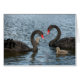 Schwarze Schwäne und ihre beiden Cygnets auf dem Graben des Markenfield Hall.