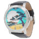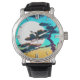 Uhr, Vintage Männeruhr mit schwarzem Lederarmband