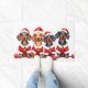 Adorable "weenie dogs" ready for the holidays! These charming Dachshunds, with their signature long bodies, look festive in their Santa outfits. A perfect gift for Dachshund lovers.