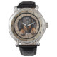 Uhr, Vintage Männeruhr mit schwarzem Lederarmband