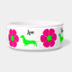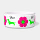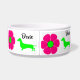 Eine so niedliche Hundeschale, warme, rosa und grüne Retro-Blume und kalkgrüne Dackeln schmücken diese Schüssel. Geben Sie Ihrem Pelzbaby Dackel Liebe!