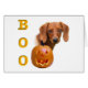 Ihre HUNDEZUCHTVERBAND Rasse sagt Happy Halloween mit einem BOO! Leckerei jemanden zu einem Halloween Dackel Geschenk auf einem t Shirt, Tasse, Karte, Schlüsselanhänger, Mousepad, und mehr.