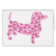 Eine Niedliche Dackel aus einem Haufen rosa Herzen