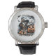Uhr, Vintage Männeruhr mit schwarzem Lederarmband