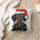 Dackel Sankt verwirrt in den Weihnachtslichtern Kissen