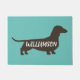 Dackel Lover's Silhouette Willkommen Mat in Aquamarin, Braun und Weiß. Personalisieren Sie Ihren Familiennamen, Willkommen oder löschen Sie den Standardtext, wenn Sie überhaupt keinen Text bevorzugen. Dieses coole Dackel Hundeschema ist ein wunderbares Geschenk für ein häusliches Party, Jungvermählte, neue Haustiereltern und für jeden Anlass. Weitere Farben sind verfügbar. Besuchen Sie Jenn's Doodle World für noch mehr Hunde, die Themen-Türme und die Wohngestaltung der Dackel-Liebhaber züchten.
