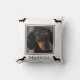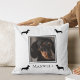 Fügen Sie Ihr Lieblings-Foto Ihrer Dackel zu diesem Wurfkissen, personalisiert mit dem Namen, und mit schwarzen Dackel-Silhouetten in jeder Ecke, auf einem weißen Hintergrund angezeigt. Die Hintergrundfarbe kann so geändert werden, dass die gewünschte Dekoration oder Farbgestaltung Anzug wird.