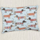 Niedliche kleine Dackel-Würstchen oder Dackel-Hunde in Wollstrickbekleidung auf hellblauem Hintergrund. Ideal für Hundeliebhaber und Hundeschlittengänger. Originelle Kunst von Nic Squirrell.