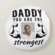 Daddy du bist das stärkste Funny Vatersche Foto Runde Kissen. Der stärkste Vater lustiges Kissen mit zeichn von starken Armen. Fügen Sie Ihr Foto hinzu. Der Text ist schwarze Typografie.