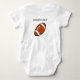 Ein Fußball auf einem Anzug, der hell und farbenfroh mit Daddys Junge ist. Auf der Vorder- und Rückseite. Auf einem Baby Body Anzug.