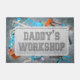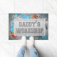Diese Türmatte ist perfekt für den Vater, der in seiner Werkstatt oder Mancave Lieben zum Basteln hat. Es hat ein industrielles männliches Design mit bedrängtem Zement mit einem Blechuntergrund, umgeben von Werkzeugen wie einem Schlüssel, Säge, Messband, Hammer und Text "Daddy's Workshop". Das perfekte Geschenk für Vater am Vatertag oder am Geburtstag.