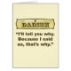Weil ich so sagte. Dadisms sind ein großes Geschenk, zum Ihres Vaters für den Vatertag zu geben. Teilen Sie das Geschenk jener lustigen Ausdrücke, die Vater immer auf Kindern, Familie und Freunden verwendet. Erhalten Sie Ihr Dadism Geschenk heute!