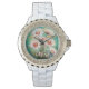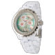 Eine wunderbare Damenuhr mit weißem Armband und grün-weiß-kariertem Ziffernblatt. Trägt sich ganz fabelhaft. Exzellenter Druck, sehr klare Farben. Schönes Design.