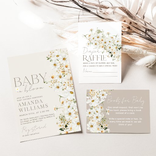 Daisy Boho Wildblume Baby in Blütendusche Einladung