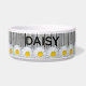 Der Füttre- und Water Bowl des Personalisierten Hundes Daisy Floral Border auf der Rustikalen Alt-Weathered-Waldzaun bietet eine Reihe von gelben und weißen Gängen entlang eines rustikal aussehenden, verwitterten alten Holzzauns, der aus dem Wetter grau geworden ist. Über der Grenze ist der Name des Hundes. Wir haben den Namen Daisy benutzt, aber Sie können ihn für den Namen Ihres Hundes ändern und jeden Text oder Bilder hinzufügen, den Sie mögen.