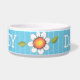 Helle und fröhliche gestrichene Dissy oder Molsien verstreut fröhlich gegen türkisblaue Streifen.