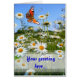 Ein schönes Wiesenbild mit der zusätzlichen Schönheit eines Pfauenschmetterlings, bereit für Ihre besondere Botschaft. Geeignet für so viele Anlässe!