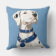 Stilvolle Abbildung eines Dalmatiner-Hundes mit einem blauen Kragen vor einem schlichten Hintergrund, die sein gepunktetes Aussehen und freundliches Verhalten deutlich macht.