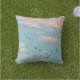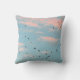 Das pastellfarbene, dalmatinische gepunktete Bild auf diesem Throw-Kissen wurde von ZoeSPEAK auf einem Originalfoto eines azurblauen Sonnenuntergangshimmels mit pufffarbigen rosa Wolken und einer schwarzen Vogelherde erstellt. Die Vögel werden zu abstrakten, schwarzen Formen, die sich über das weiche Wasser und den rosa Himmel verstreuten.