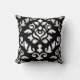 Verzierter barocker Artdamastentwurf mit weißem und grauem Detail über einen schwarzen Hintergrund.