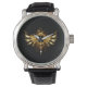 Uhr, Vintage Männeruhr mit schwarzem Lederarmband