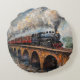 Dampfzug auf einer Brücke - Ölgemälde Rundes Kissen