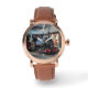 Uhr, Vintage Männeruhr mit schwarzem Lederarmband