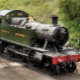Eine schön restaurierte Dampfbahn und Waggons aus vergangener Zeit verließ den Bahnhof und den Motor-Fahrer über den Schlüssel, bevor er die Bahn fahren darf. England UK.
