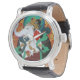 Uhr, Vintage Männeruhr mit schwarzem Lederarmband