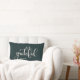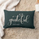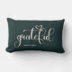 Ein modernes einfaches Lumbalkissen in tiefgrünem Grün mit dem Wort "Dankbar", personalisieren Sie mit Ihrem Namen. Dieses Kissen ist die perfekte Ergänzung zu Ihren Herbstdekorationen im Herbst, oder macht ein schönes Geschenk.