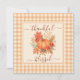 Senden Sie mit dieser bedankten und gesegneten Flachkarte herzliche Herbstwünsche. Mit einem zauberhaften, von Herbstblättern und Blumen umgebenen Wasserfarbenkürbis auf rustikalem Gingham-Hintergrund ist diese Karte ideal für Erntedank-Gruß, Party Einladungen im Herbst oder nachdenkliche saisonale Noten. Sein gemütlicher Bauernstil spiegelt den Geist der Dankbarkeit und Ernte wider und macht ihn zu einem wahren Schatz, den Ihre Lieben schätzen werden. Ideal für Familien, Freunde oder als besondere Touch, Geschenke während der Herbstsaison zu begleiten. Die Herbstkürbis und das Herbstblätterdesign Perfect for Erntedank Greetings, Einladungen, oder Dankeschön Noten Flat Card Stil für einfaches Verschicken und Gießen Große Saisonauflage für Herbst- und Erntefeiern