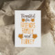 Erntedank Grußkarte mit den Worten "Dankbar für Freunde Familie und Truthahn". Fügen Sie Ihre eigene Nachricht auf die Rückseite.
