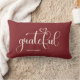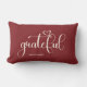 Ein modernes einfaches Lumbalkissen in Bordeaux mit dem Wort "Dankbar", personalisieren Sie mit Ihrem Namen. Dieses Kissen ist die perfekte Ergänzung zu Ihren Herbstdekorationen im Herbst, oder macht ein schönes Geschenk.