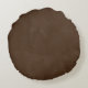 Ein rundes Kissen, das sagt: Dankbar. Entworfen mit einer Aquarellbild von Kürbissen, Eicheln, Pilzen und saisonalen Herbstblättern. An der Spitze eine Grenze, die aus Herbstblättern, Beeren, Eicheln und anderem Blattwerk besteht. Ein dunkelbrauner Aquarell.