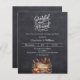 Ein Imitat rustikalen Chalkboard Hintergrund. Dekoriert mit einem Holzbrett mit einem alten Hut, Kürbis, Mais. Personalisieren Sie die Party-Details und fügen Sie sie hinzu. Text-Skript: Dankbar und gesegnet. 1 Blatt = 1 Einladung mit Druckkante bis Kante.
