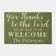 Willkommen in der Herbstsaison und beeindrucken Ihre Gäste mit dieser personalisierten herbstbezogenen Türmatte, die die aufsehenerregende biblische Schrift aus Psalm 136:3 enthält: "Danke an den Herrn." Diese wunderschön gestaltete Türmatte aus Erntedank zeigt eine elegante Schriftzeichen-Kalligraphie für den Vers, gepaart mit charmanten Herbstelementen wie Eicheln, kräftigen roten, gelben und orangefarbenen Ahornschnitten und Kürbissen. Im unteren Teil finden Sie das Wort "Willkommen" und Ihren eigenen Familiennamen in einem eleganten cremefarbenen Schriftart, das ganze Set vor einem reichen moosgrünen oder kombu grünen Hintergrund. Ideal, um Ihre herbstliche Outdoor-Dekoration mit Wärme und Stil zu verbinden oder als eine durchdachte Erntedank-Dekoration. Ideal für Einstiegs-, Veranda- oder Haustüren. Diese individuell gestaltbare Türmatte bringt Ihnen in dieser Herbstsaison eine schöne und einladende Touch auf Ihre Zuhause.
